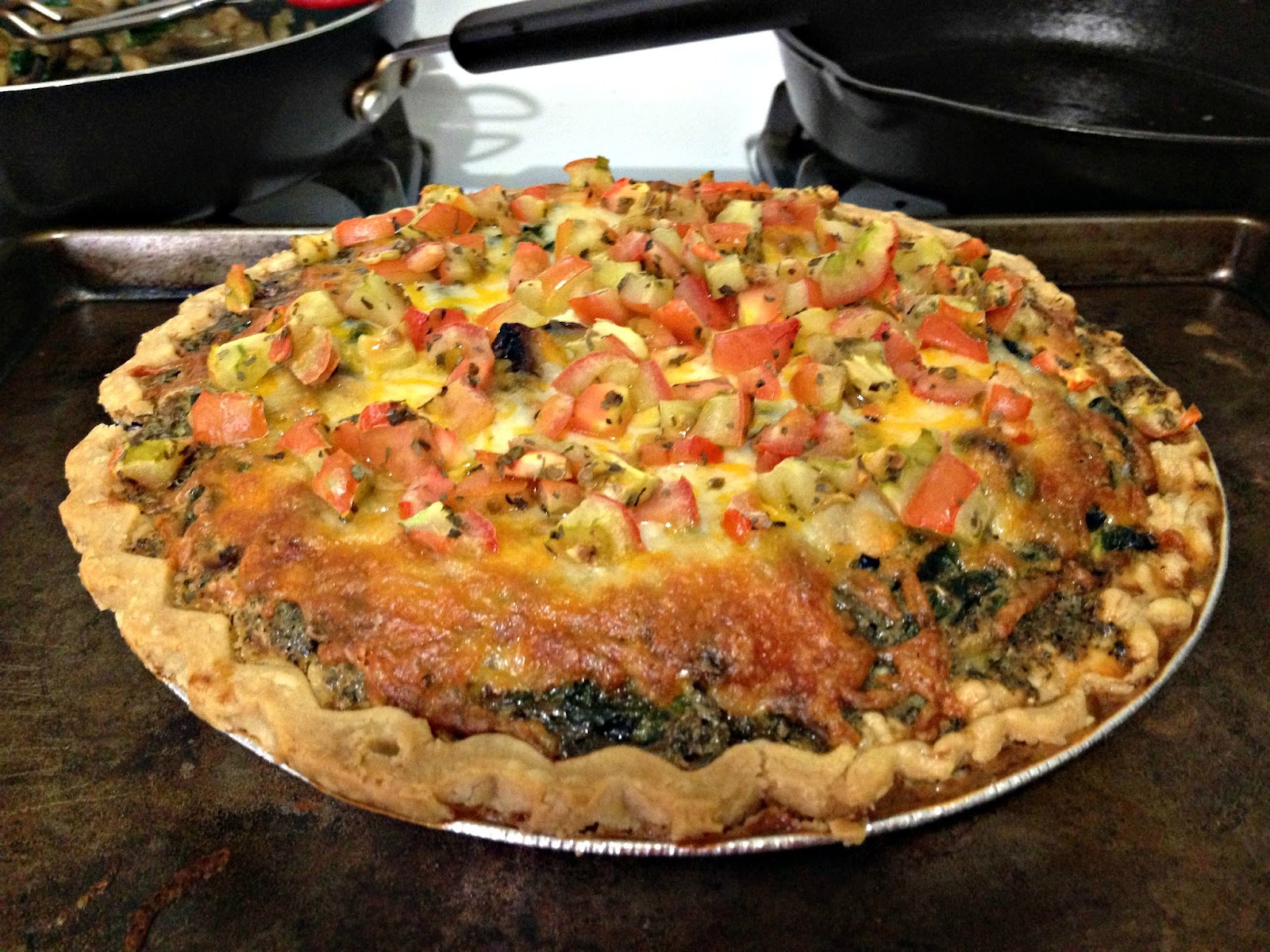 We were woken up by her sister throwing her baby on our bed...EARLY!!! Her sister was trying to figure something to make that Morning for Breakfast. She said she liked Cheese, but did not want much eggs. Naturally, that sounded like a Quiche in my head. We went to the store to pick up a Pie Crust and Spinach.